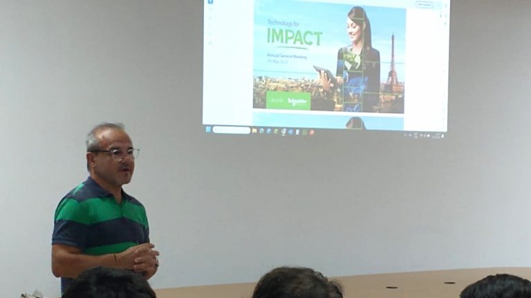 El Ing. Leandro Romero, profesional de la multinacional francesa Schneider Electric, compartió su experiencia con estudiantes de 4to y 5to año de Ing. Electromecánica, a través de una enriquecedora charla en el marco de la asignatura Proyecto Final.