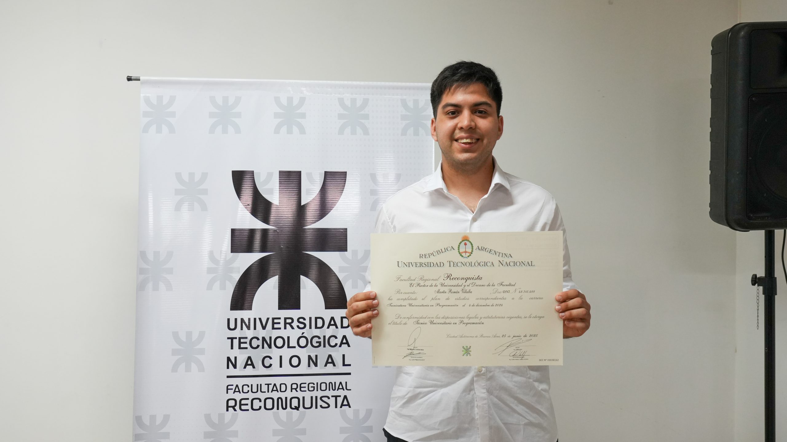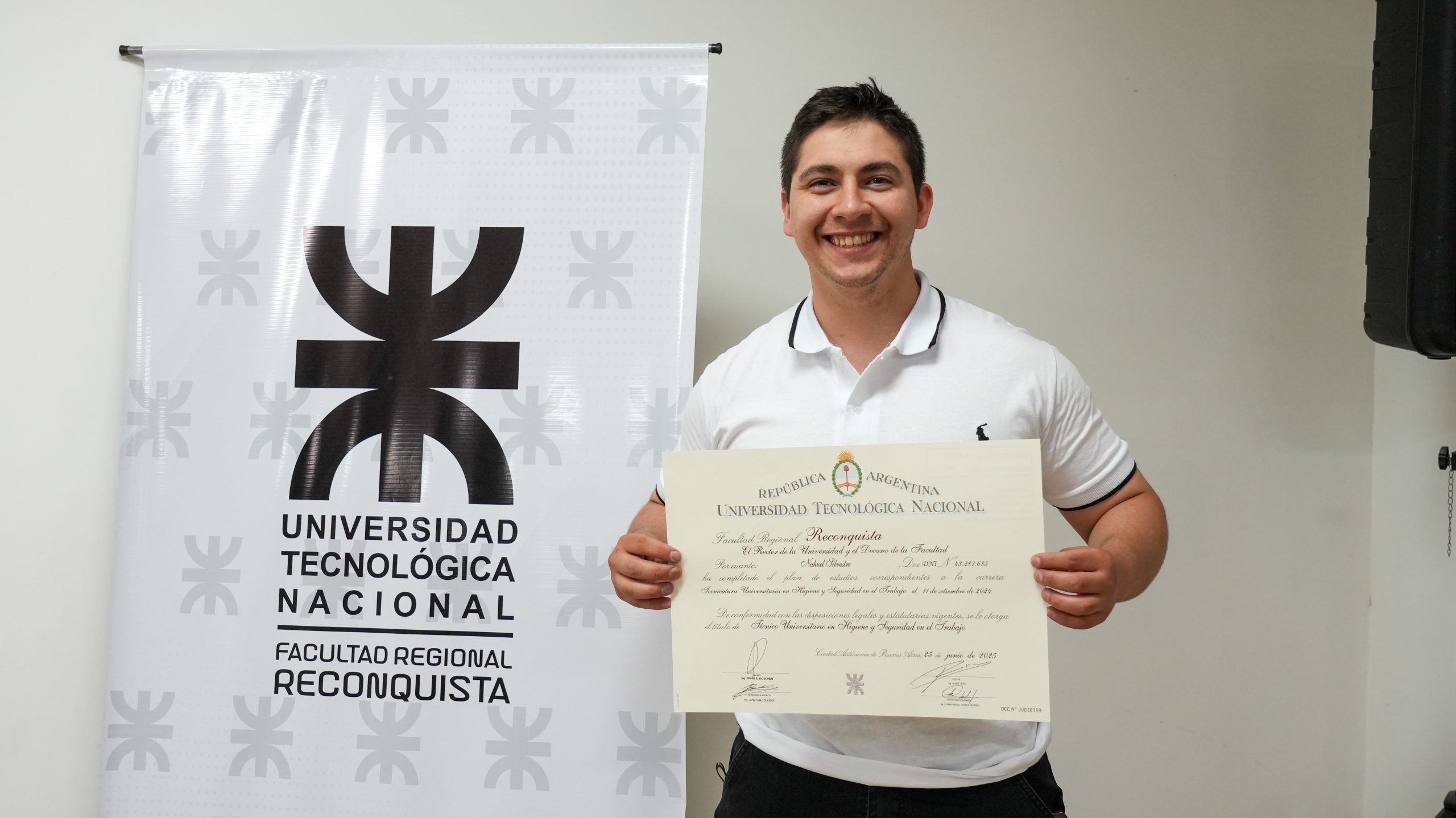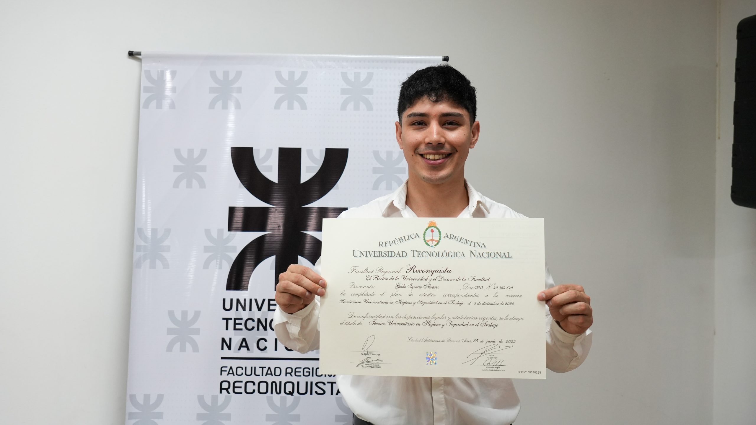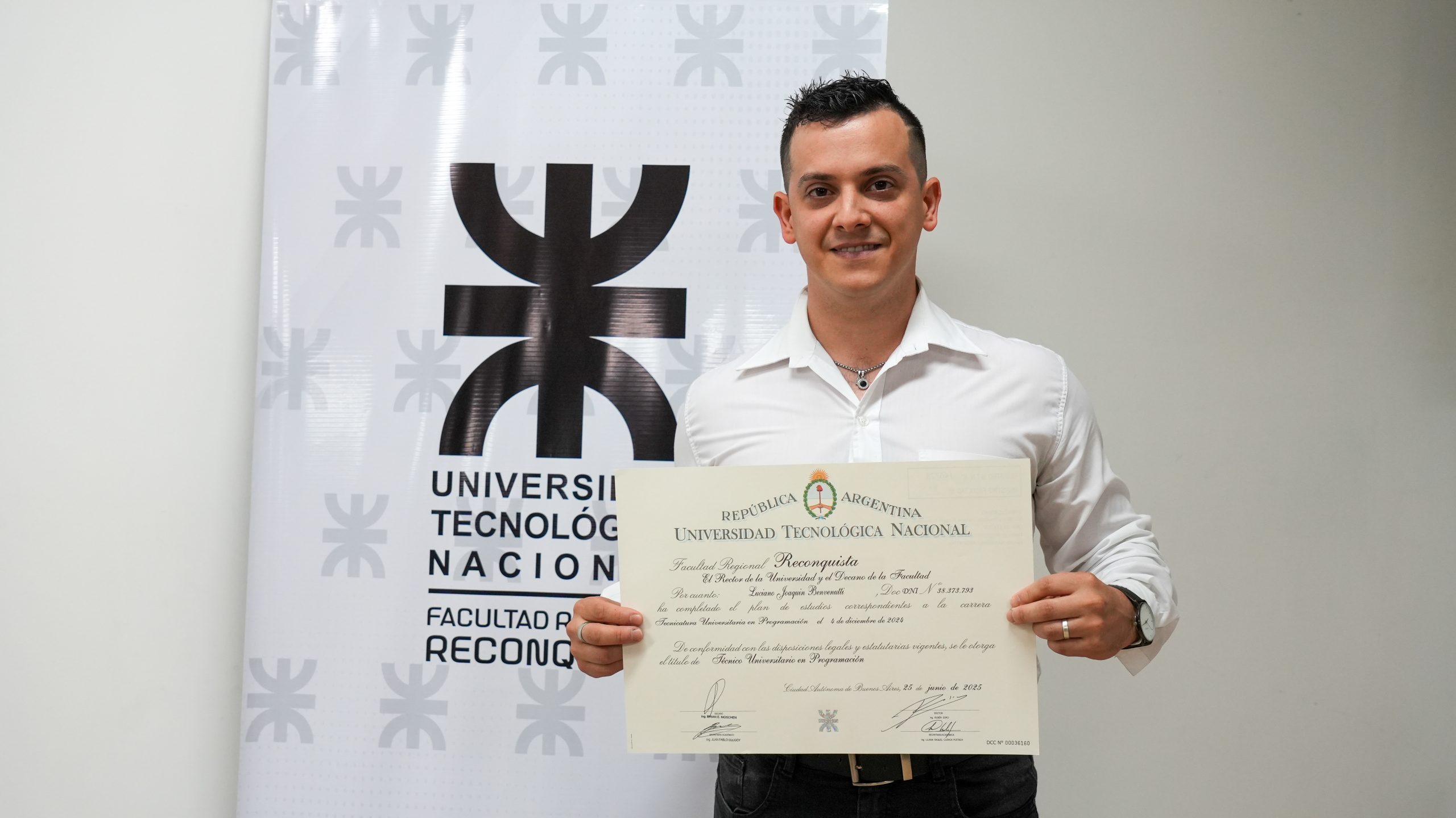 Acompañaron la entrega de los diplomas el Decano, Brian Moschen, el Secretario Académico, Juan Pablo Suligoy, y el responsable del área Títulos, Adrián Soria.